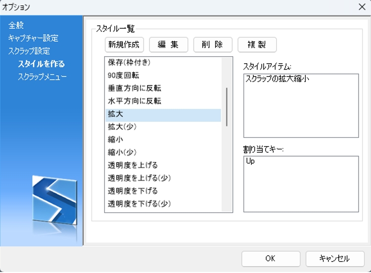 「スタイルを作る」では各機能のショートカットキーの割り当てが可能です。設定が完了したら「OK」を押して終了します。