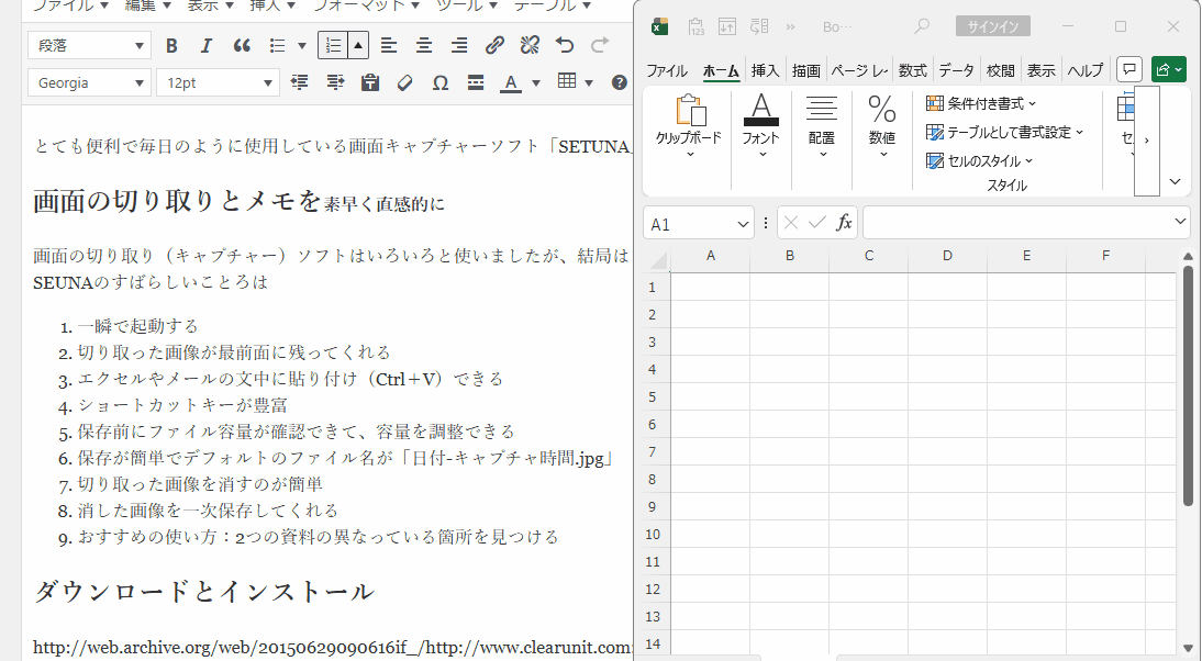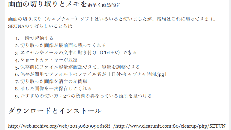 画面の切り取り(キャプチャー)ソフトはいろいろと使いましたが、結局はこれに戻ってきます。SEUNAのすばらしいことろは