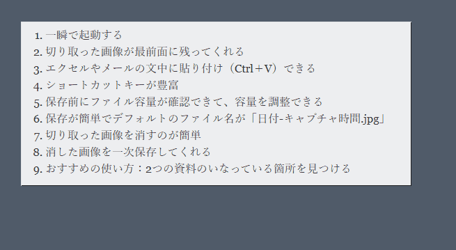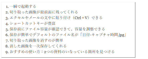 - 保存が簡単でデフォルトのファイル名が「日付-キャプチャ時間.jpg」