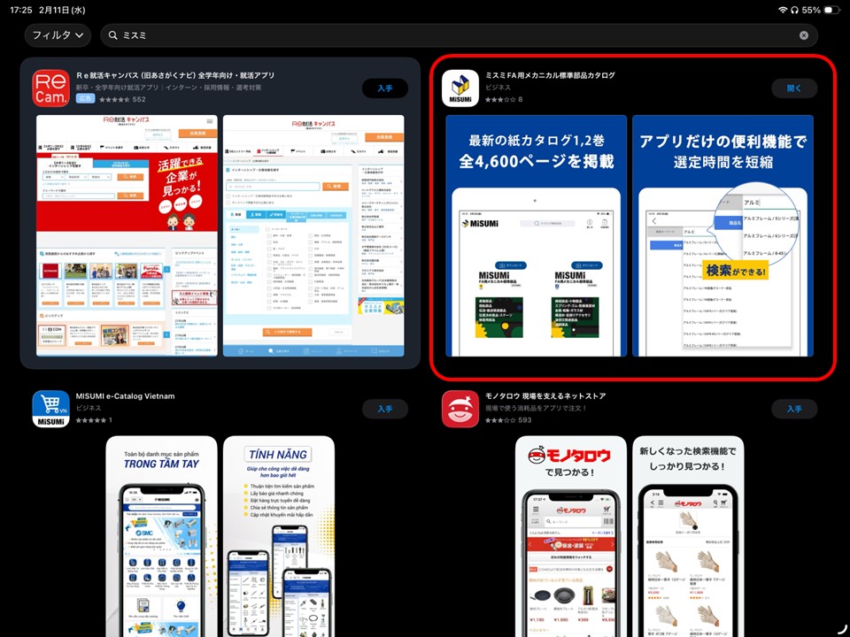 Google playとApp Storeにもありましたのでタブレットであればなんでも良いです。ミスミと検索してアプリをダウンロードします。